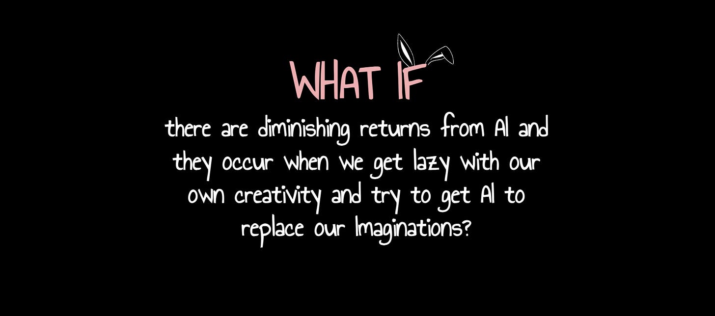 As we journey further into the Imagination Age, a critical question arises: What happens when we push AI beyond its optimal utility, especially in domains inherently human, like imagination? This scenario probes into the potential pitfalls of overburdening AI with tasks that might dilute, rather than enhance, human creativity and imagination. It's a contemplation of the balance between leveraging AI for efficiency and nurturing the distinctly human trait of imagination.