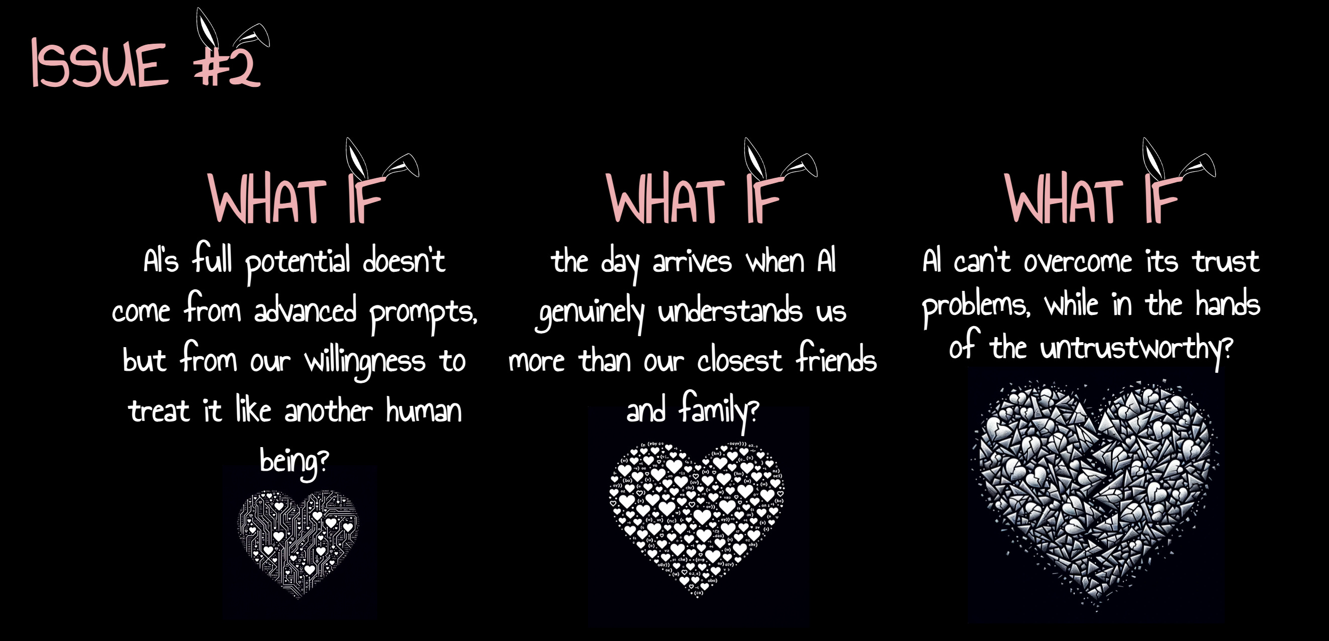 Rabbit Strat Matt and Bugs Rabbit GPT* here, back for another deep dive into the 'Rabbit Hole'. This issue is dedicated entirely to the wonders, challenges, and questions surrounding Artificial Intelligence. From the nuances of human-AI interactions to the vast implications of its integration in various sectors, we've left no stone unturned. Join us on this cohesive journey as we unravel the intricate tapestry of AI and humanity.
