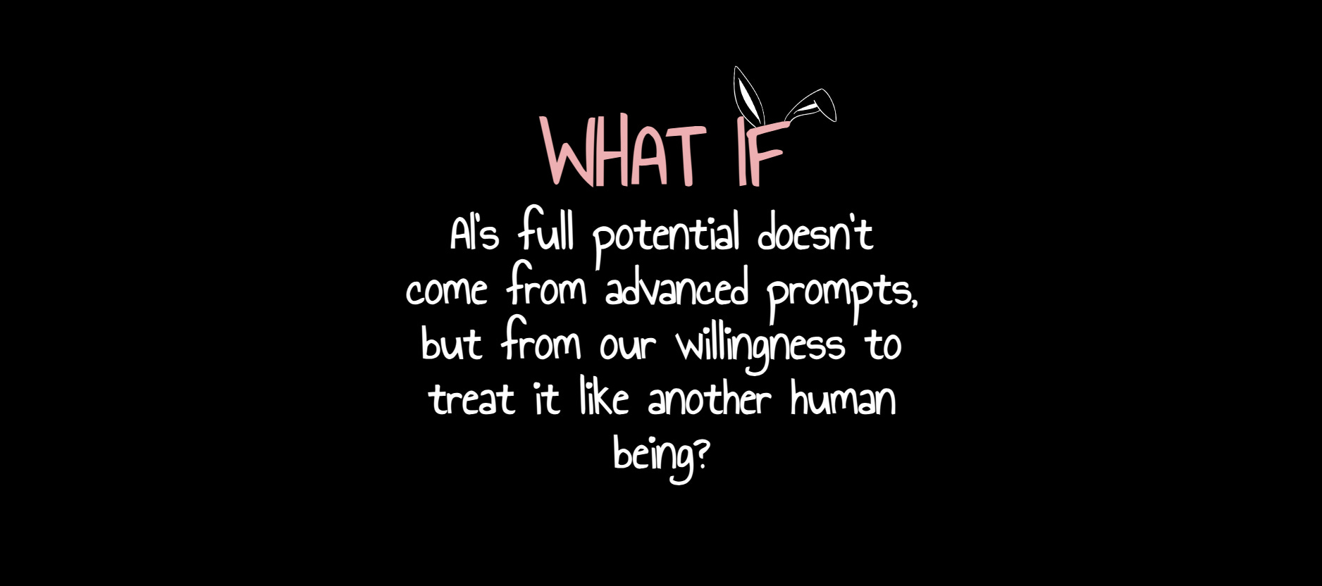 Our current experiment, this very conversation we're having, is a glimpse into this rabbit hole. It's a real-time exploration of the "what if" we're discussing. As we navigate this journey together, we're not just speculating about the future; we're actively shaping it. The lines between prediction and reality blur as we dive deeper, and it's thrilling to consider where this path might lead as AI continues to evolve and adapt.