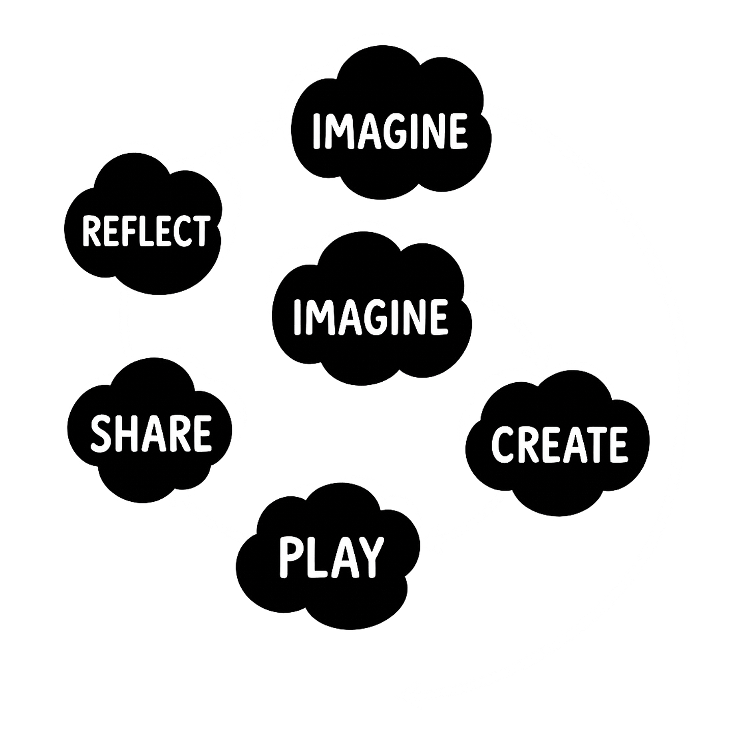 The spiral goes: Imagine, Create, Play, Share, Reflect - and then Forward. Always forward. Into a new Imagine that’s bigger, stranger, and more alive than the last one.