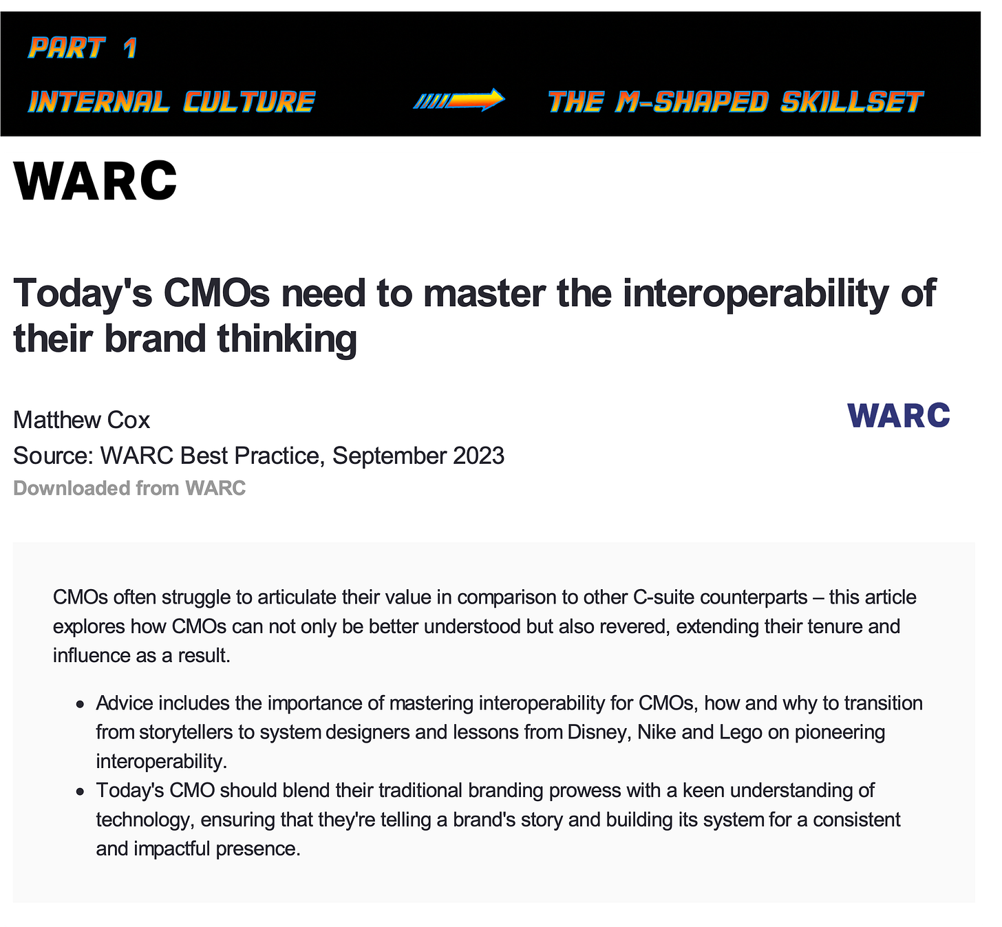 Part 1: September 2023 = Todayâs CMOs need to master the interoperability of their brand thinking